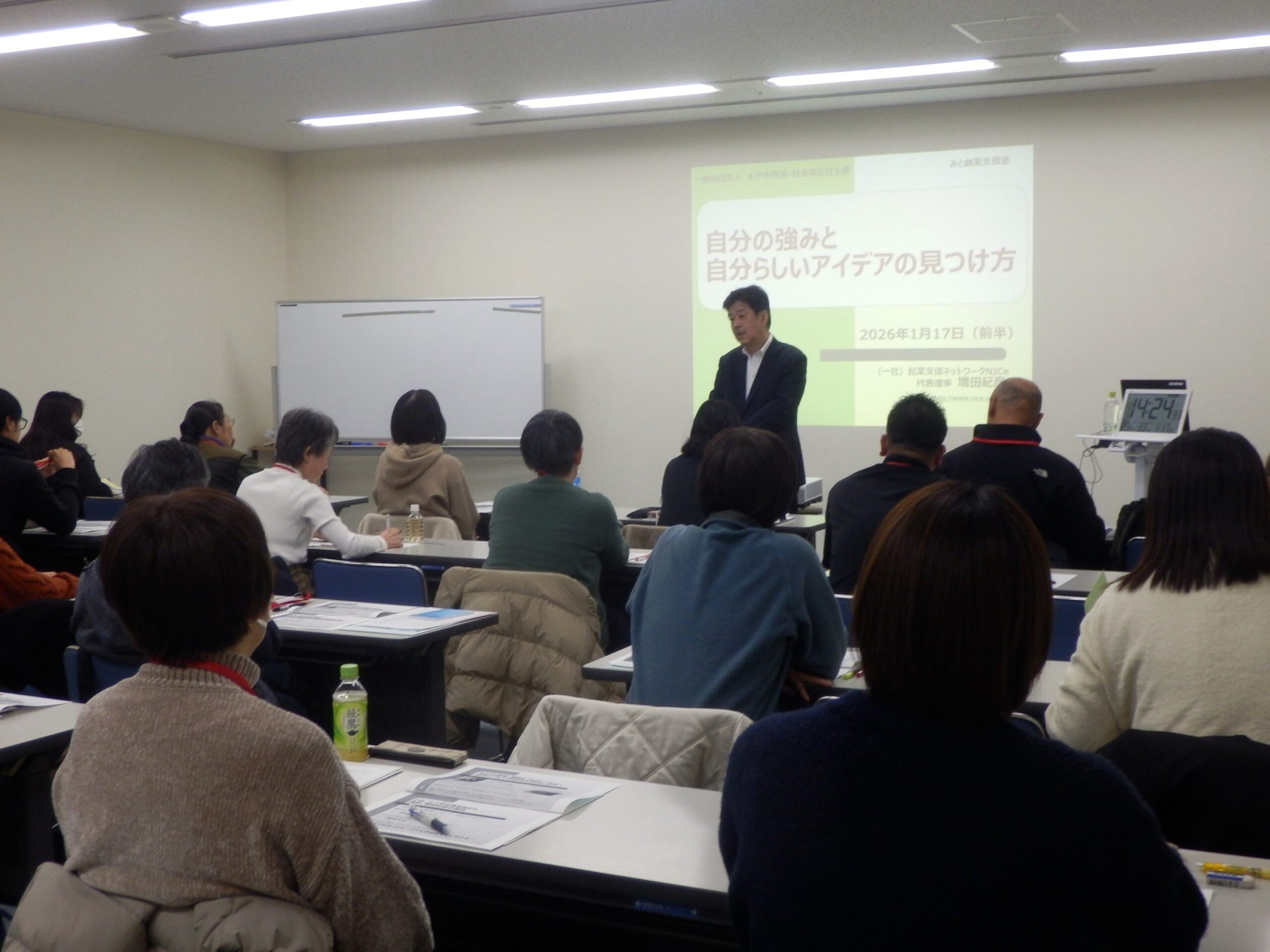 「第22期 みと創業支援塾」全日程が終了しました! 2026.3.16 みと創業支援塾事務局です。 1月17日から計7日間にわたり開催してまいりました「第22期みと創業支援塾」は、 3月14日(土)に無事、全日程が終了いたしました。 ご参加いただいた皆様、誠にありがとうございました。 みと創業支援塾事務局